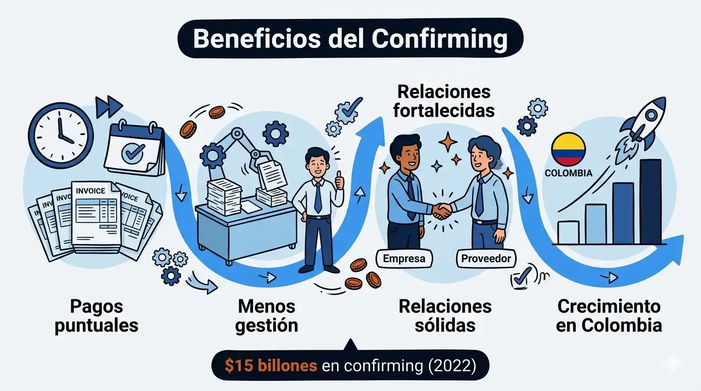 El crecimiento del confirming en Colombia se debe, en parte, a la necesidad de mejorar la eficiencia en la cadena de suministro y a la presión por mantener relaciones comerciales sólidas en un mercado cada vez más competitivo. Empresas de diversos sectores, desde la manufactura hasta el retail, han adoptado esta herramienta para optimizar sus operaciones y mejorar la satisfacción de sus proveedores.
