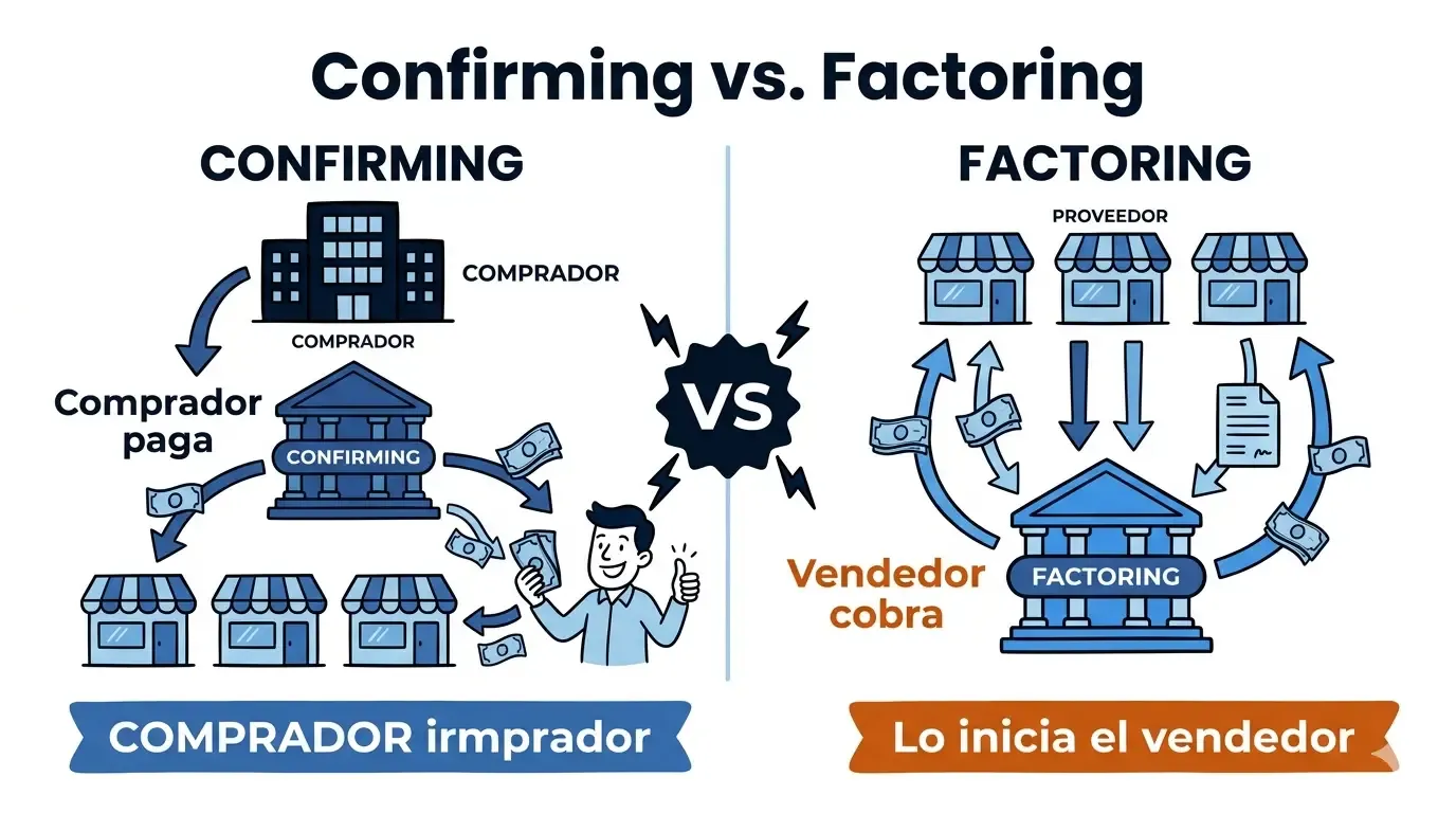 - Semana: Análisis de las diferencias clave entre confirming y factoring y su impacto en el flujo de caja y las relaciones comerciales. Semana