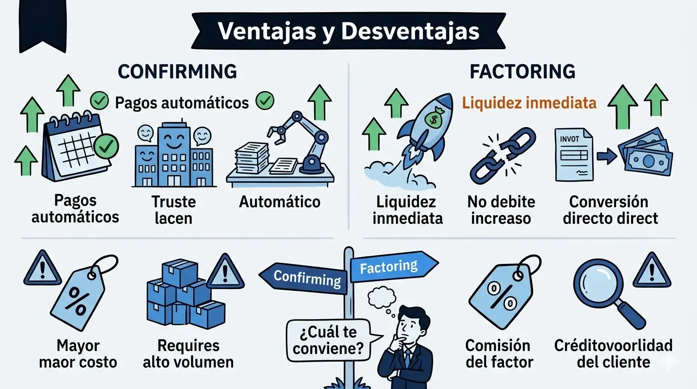 - Complejidad operativa: Implementar el confirming puede requerir ajustes en los procesos internos de la empresa.